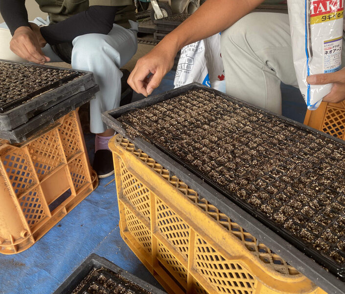 今年も11月の販売に向け、タマネギの苗を仕立てております。残暑での播種。発芽までは涼しい場所で管理し、その後は苗床にお引越し。より良い苗作りのため、担当者も毎年試行錯誤をしております。
