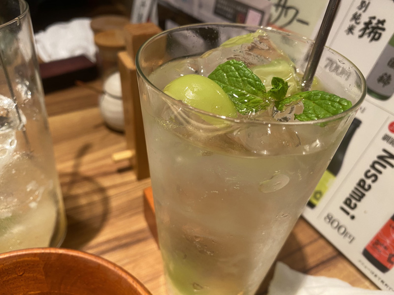 料理のお供に、シャインマスカットのサワー。連戦で疲れた肝臓を、しっかりと癒してくれました。ごちそうさまでした。
