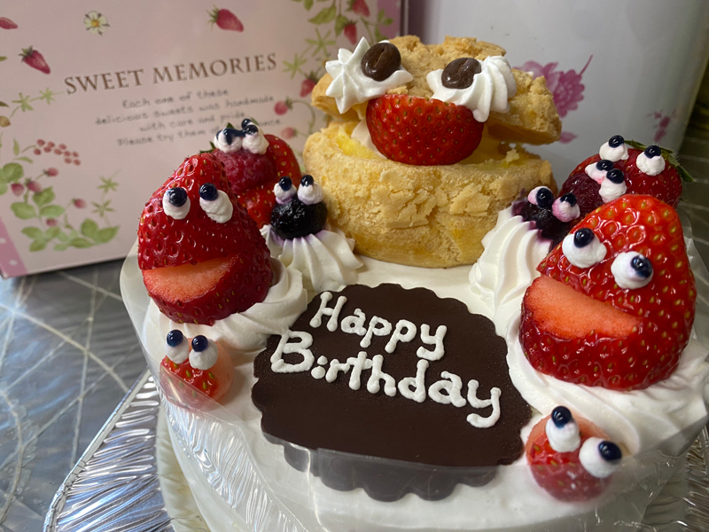 少し前ですが、サプライズで、とっても可愛いケーキが事務所に届きました。幾つになっても嬉しいものです。送っていただいた皆さん、ありがとうございました。