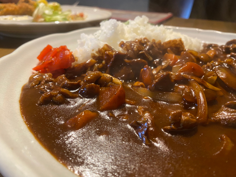 「あのカツカレーが食べたい」とのリクエストで、若者たちを連れて、久しぶりの洋食店へ。迷った挙げ句、ハヤシライスも一緒に注文。酸味とコクのある、洋食店ならではの味。全員大満足でした。